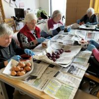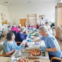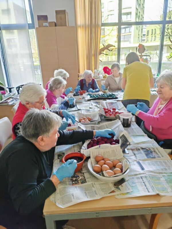 V Črnuče so se stanovalci starejših dni zbrali v prijetnem, nasmejanem vzdušju in skupaj ustvarjali pravo velikonočno čarovnijo. Mize so bile polne barv, čopičev in jajc, ki so pod spretnimi rokami dobivala čudovite vzorce in živahne odtenke.