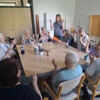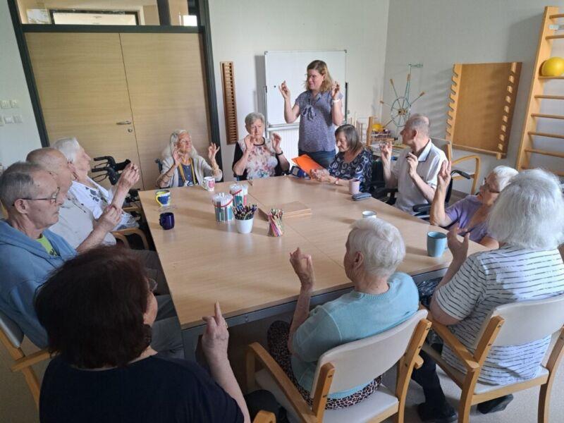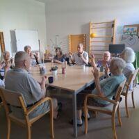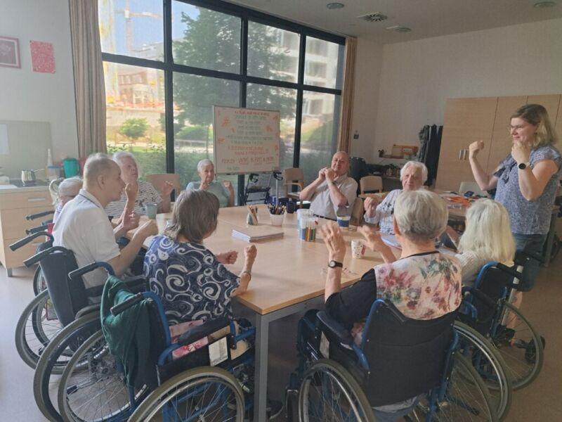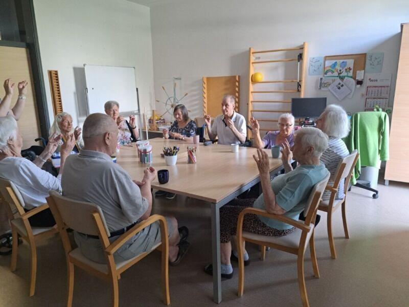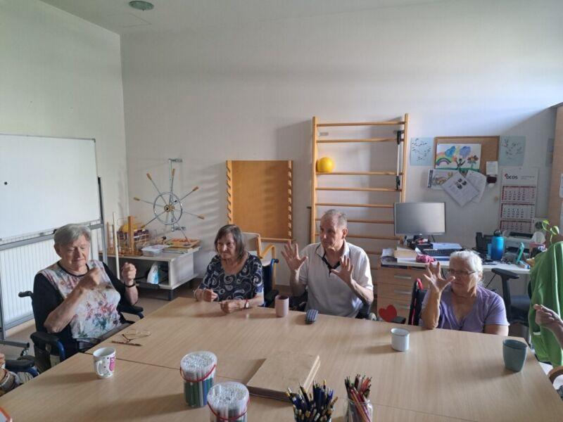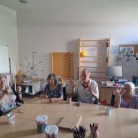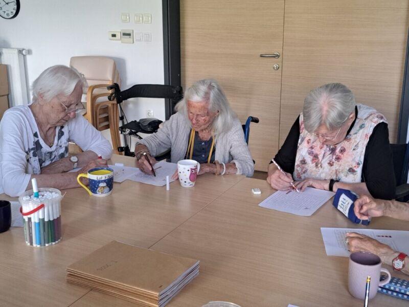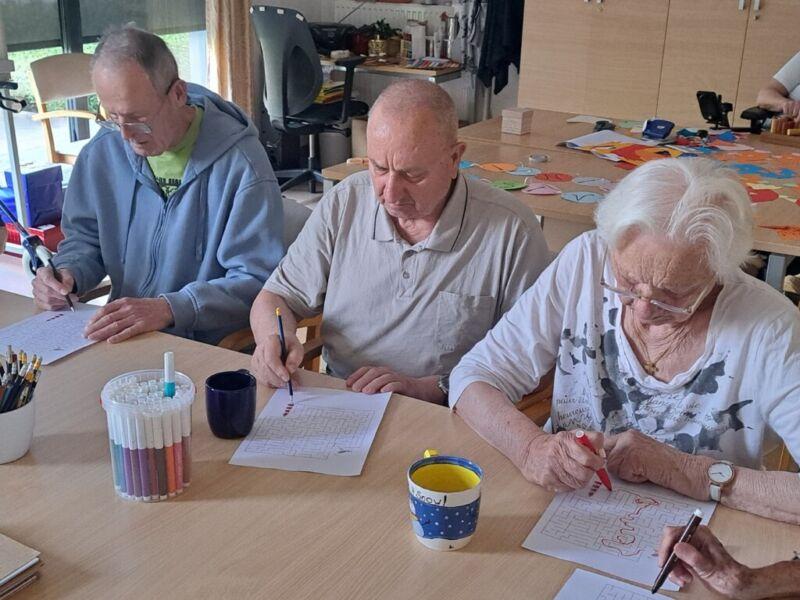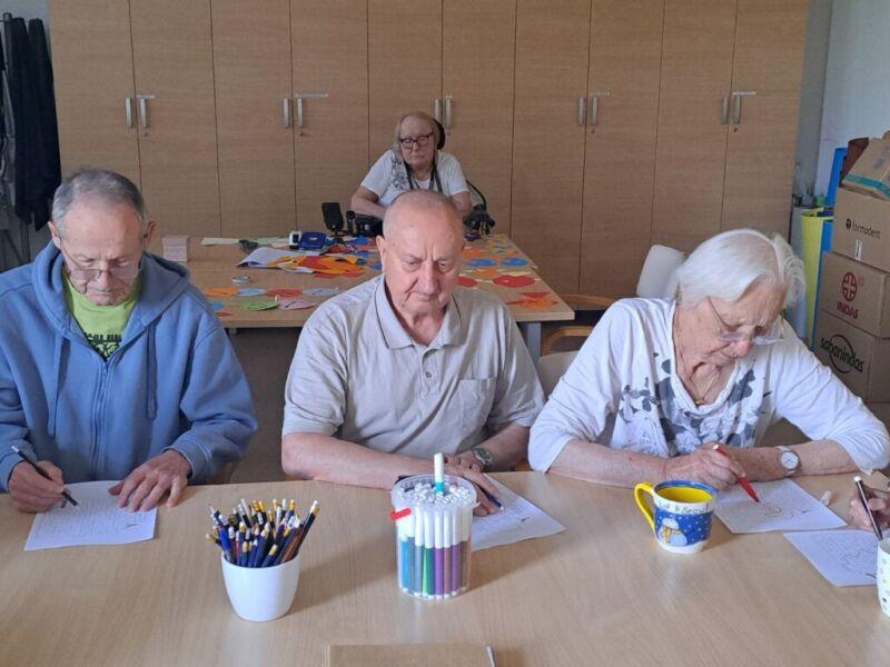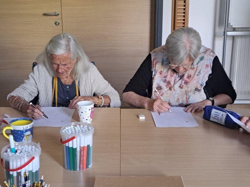 V Centru starejših Črnuče so danes imeli stanovalci zadnji šolski dan. Na skupini Radi pišemo z roko so v sončnem in vročem dopoldnevu uživali v prijetno ohlajenih prostorih delovne terapije. Ob dišeči kavi in slastnem soku so najprej ogreli roke za lažje pisanje in nato začeli z reševanjem še zadnjih težkih nalog pred počitnicami. Po poletnih počitnicah pa jih čakajo nove naloge in izzivi.
