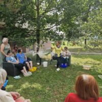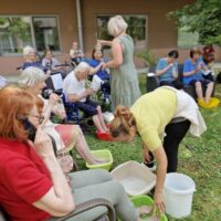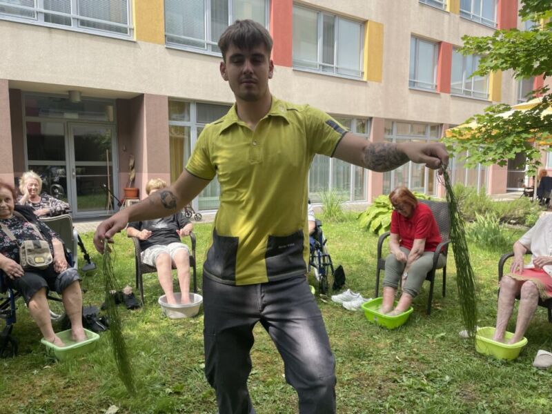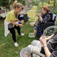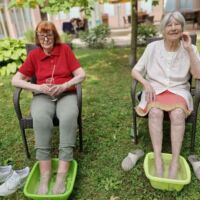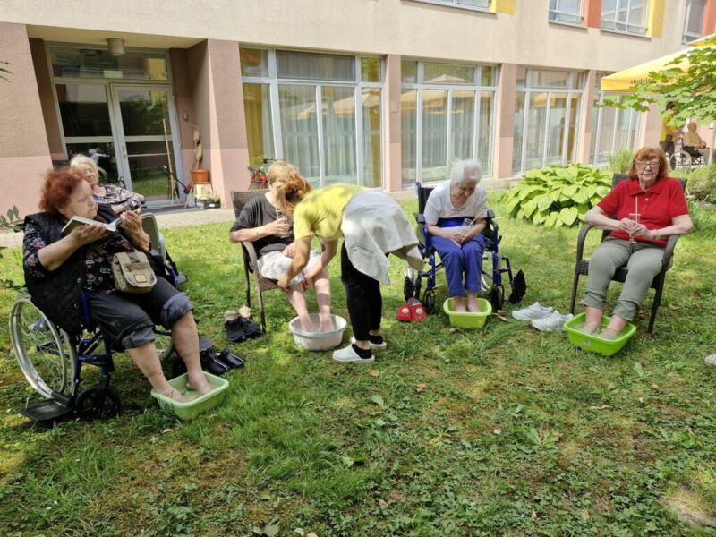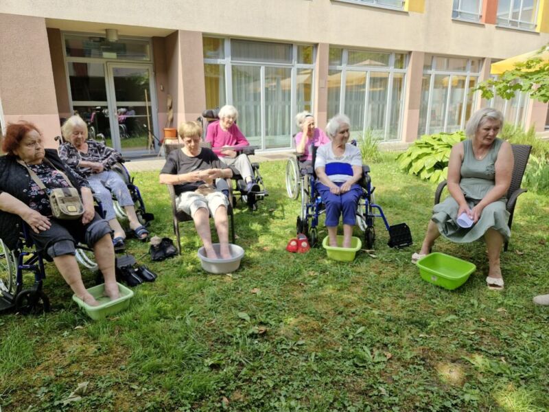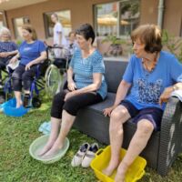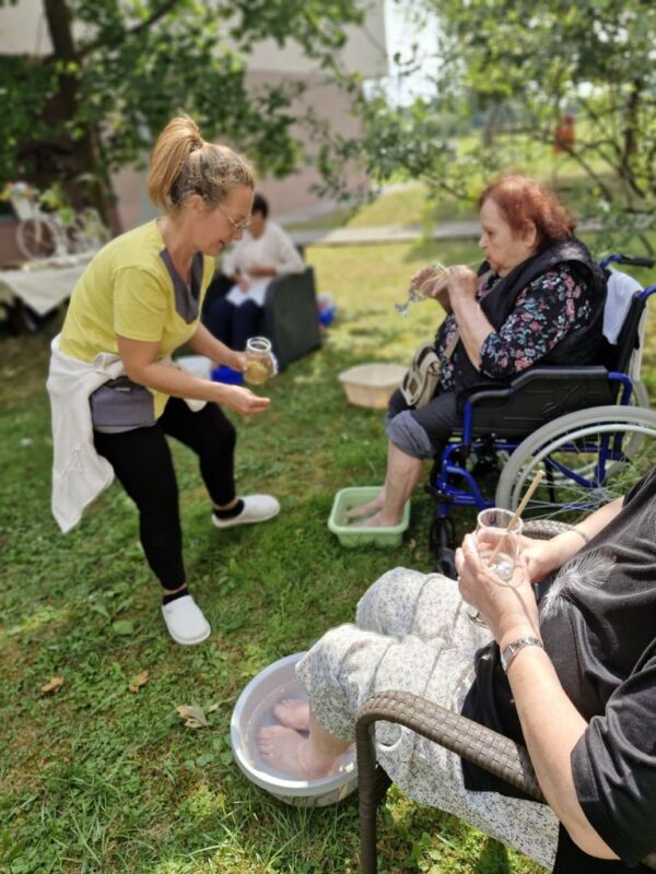 Pod senčnimi krošnjami dreves smo si privoščili pravo poletno razvajanje. Ob nežnih zvokih sproščujoče glasbe našega sodelavca Aleksandra, ob kozarcu osvežilne limonade, vodeni meditaciji in zeliščni kopeli za stopala smo si napolnili dušo in telo z novo energijo.